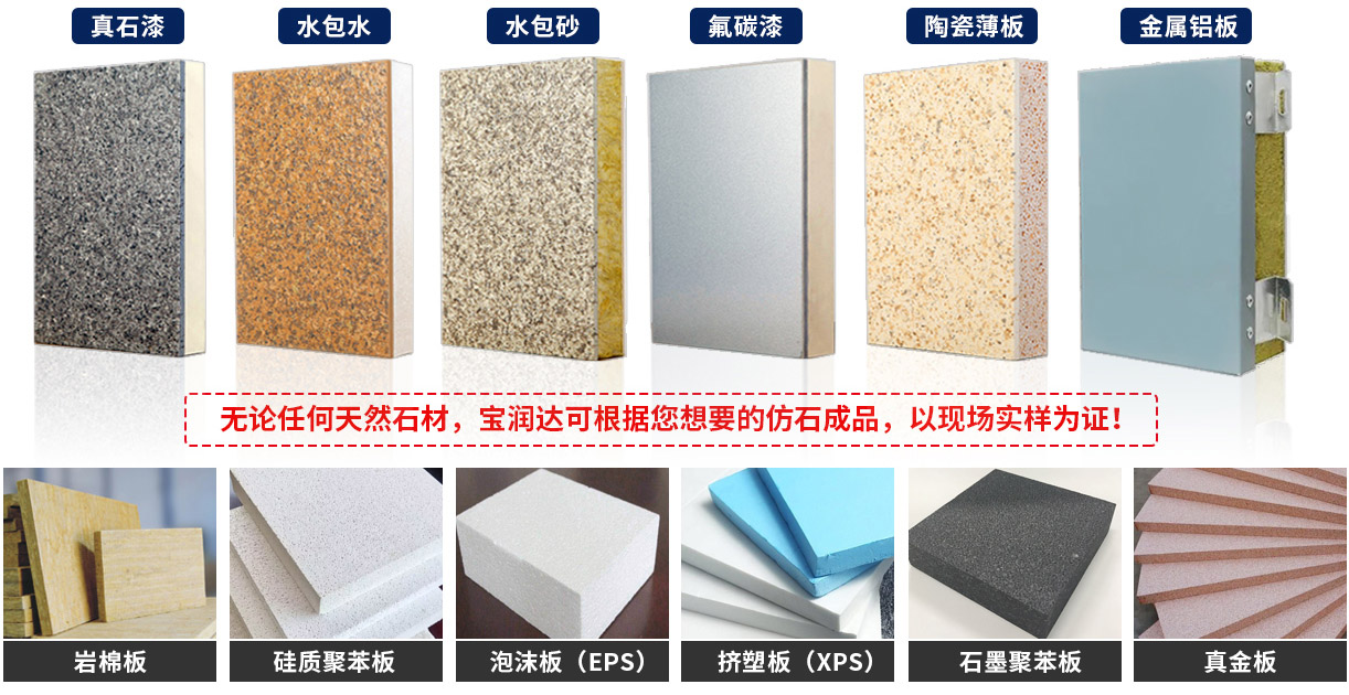 寶潤達擁有6條先進自動化一體板生產線,可生產飾面效果{真石漆、多彩漆,水包水,水包沙,實色/金屬氟碳漆、陶瓷薄板、鋁板},保溫芯材采用{ A級防火巖棉板,真金板,擠塑板,泡沫板,石墨聚苯板,硅脂聚苯板}等,滿足各種項目芯材、飾面效果定制要求,日產量12000平,極速發(fā)貨。
